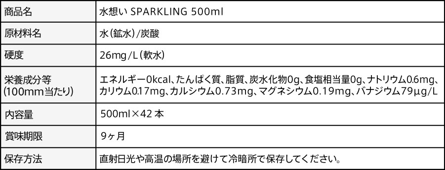 非加熱処理により天然水本来の味わいを丁寧に磨き上げ、1Lあたり5Lの炭酸ガスを充填しました。